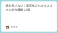 どんなマンガを読もうか迷っているアナタに、私がこれまで数百冊読んできたマンガの中から、自信を持っておすすめするマンガを紹介します。マンガ感想リストを、作者名順にリスト化しました。ネタバレを含みますのでご了承ください。あ行秋里和国 【眠れる森...