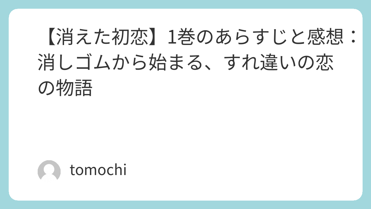 【消えた初恋】1巻のあらすじと感想:消しゴムから始まる、すれ違いの恋の物語