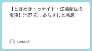 今回紹介するのは、池野 恋 さんの【ときめきトゥナイト・江藤蘭世の宝箱】です。【ときめきトゥナイト】というマンガをご存じですか?アラフォー女子のほどんどが、小・中学生の頃に読んだ記憶があると思います。1982年7月号から1994年10月号ま...