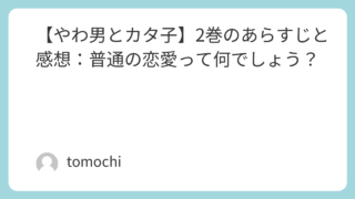 ラブコメ・恋愛 【やわ男とカタ子】1巻のあらすじと感想:喪女脱却をしたい人は必読! 【やわ男とカタ子】は、自分に自信がない「こじらせ喪女」が、合コンで出会ったおせっかいオネエの力を借り、喪女脱却を目指すラブコメディ。このマンガを読めば、アナタが抱えてる悩みの糸口が見つかるかもしれませんよ。 2023.08.04 ラブコメ・恋愛