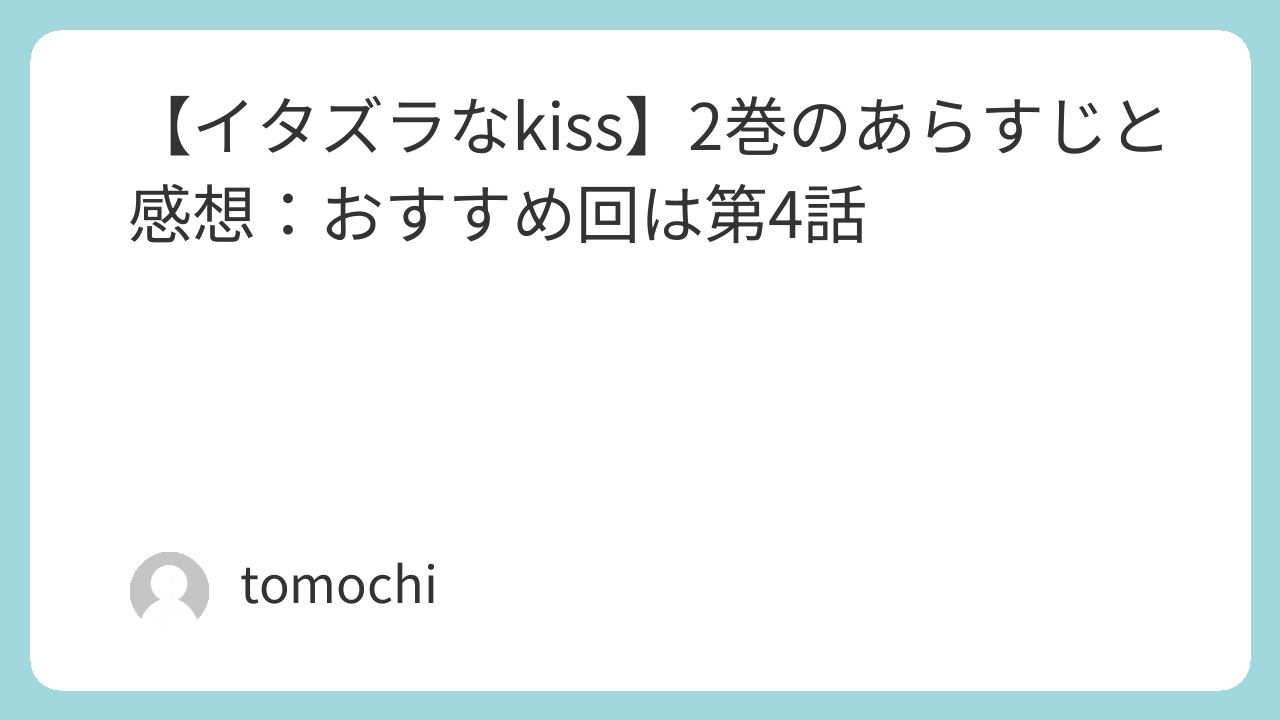 【イタズラなkiss】2巻のあらすじと感想:関連記事
