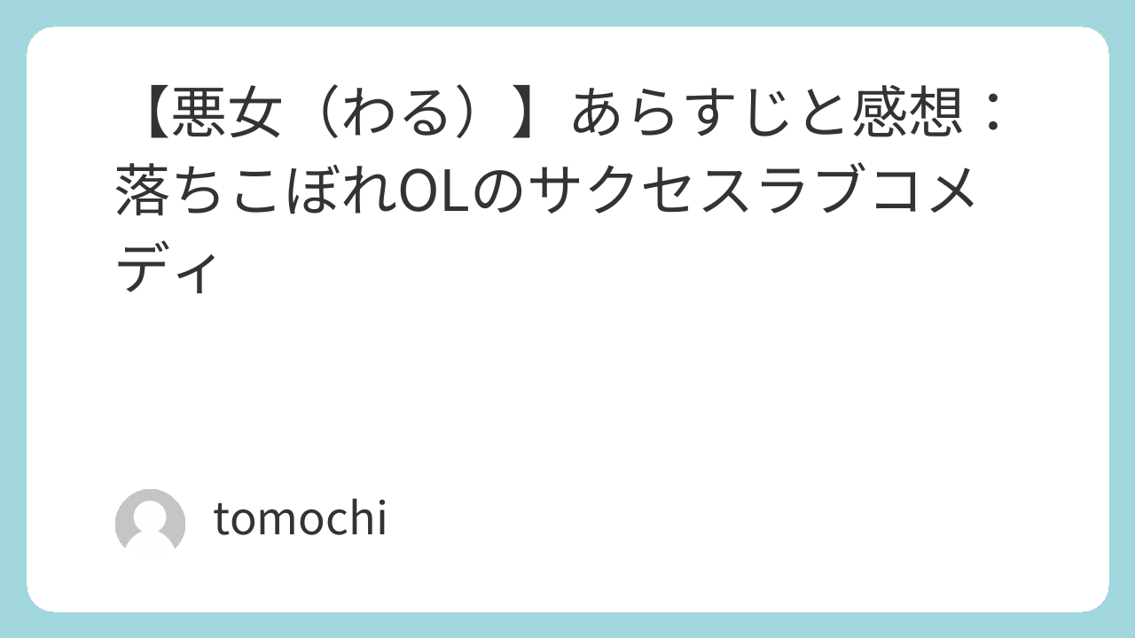 【悪女(わる)】あらすじと感想:落ちこぼれOLのサクセスラブコメディ