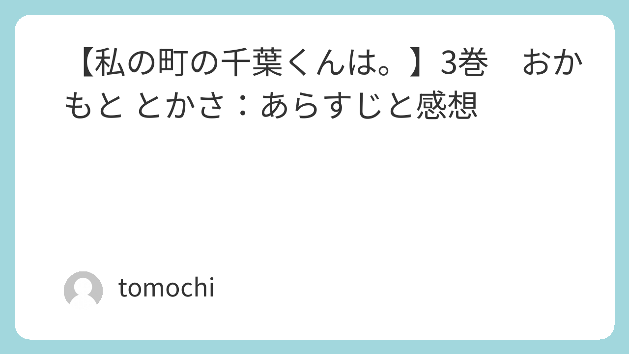 - 【私の町の千葉くんは。】1巻 おかもと とかさ:あらすじと感想