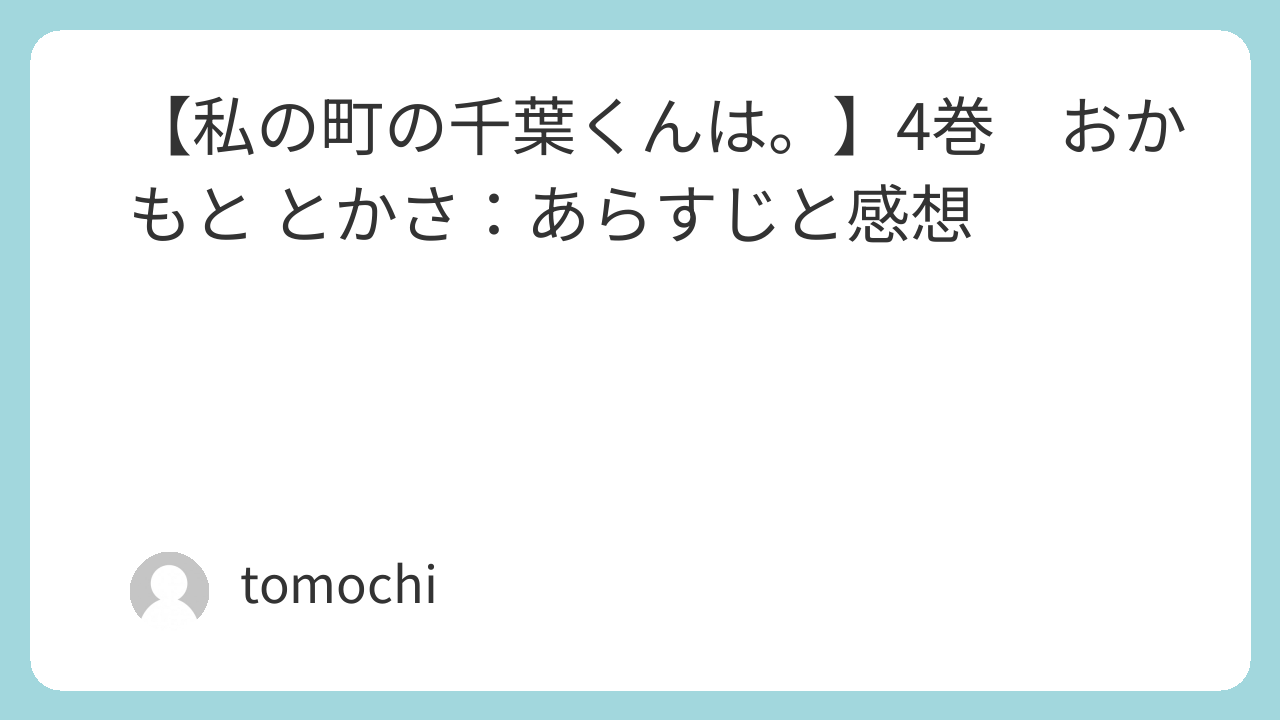 - 【私の町の千葉くんは。】1巻 おかもと とかさ:あらすじと感想
