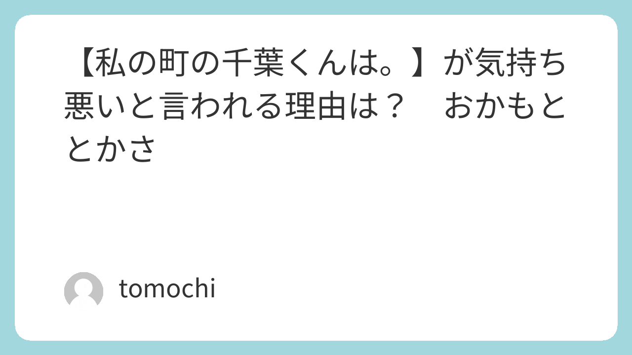 【私の町の千葉くんは】が気持ち悪いと言われる理由は?:関連記事